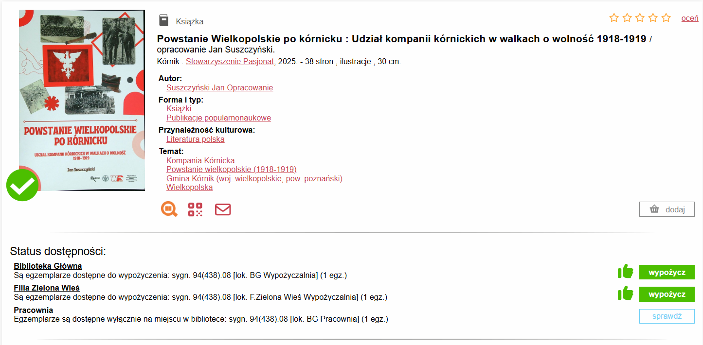 Każdy spragniony historycznej wiedzy może ją samodzielnie wypożyczyć i poznawać historię kompanii kórnickich w domowym zaciszu.